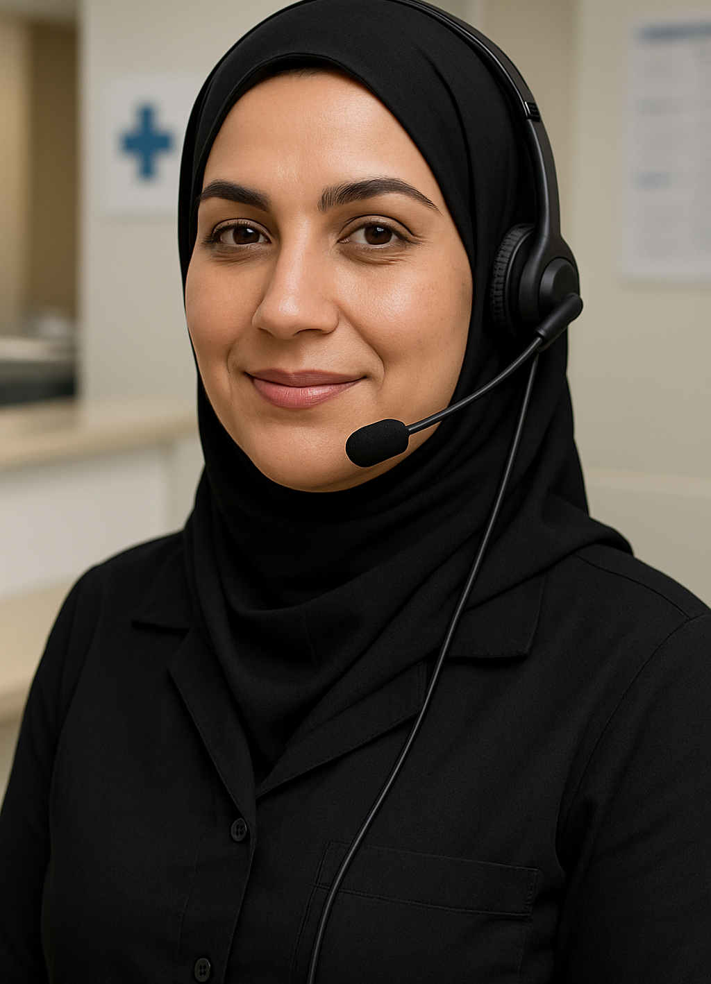 Friendly dental clinic receptionist managing appointments and patient inquiries